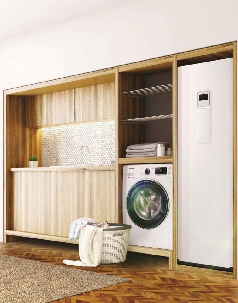- Compact ontwerp: Met een geïntegreerde watertank (200 of 260 liter) is het systeem perfect voor plaatsing in een (bij)keuken of technische ruimte.
