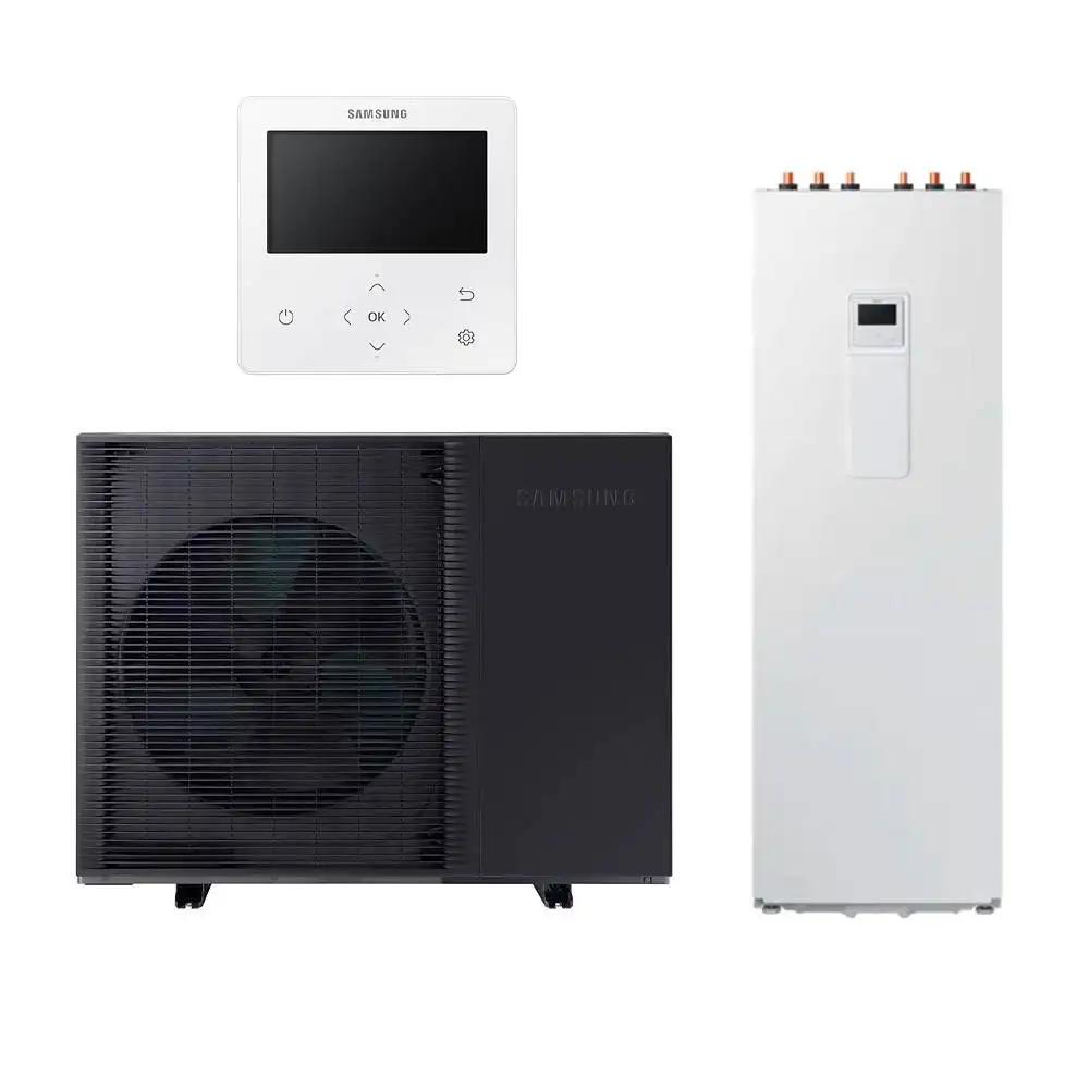 Samsung ClimateHub: Compact systeem met geïntegreerde warmwatertank (200 of 260 liter) en stille werking (35 dB).